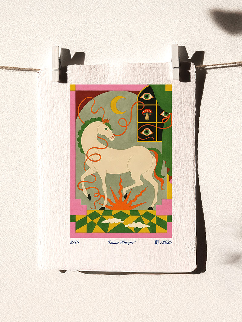 It is printed on 310 gsm textured natural white Fine Art Paper.